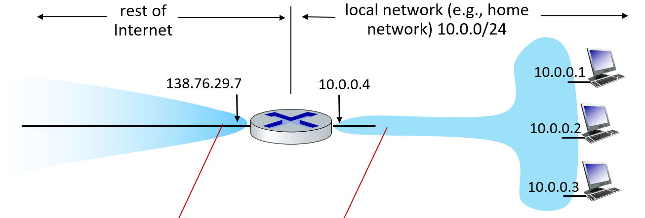 외부 인터넷의 관점에서 보면, 해당하는 local network(집)로 들어가는 유일한 통로로 NAT 밖에 보이지 않는다.