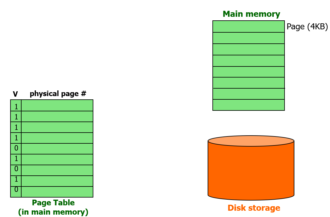 가상 메모리는 위에서 적었듯, main memory를 secondary storage에 대한 캐시인 것처럼 동작시킬 수 있다.