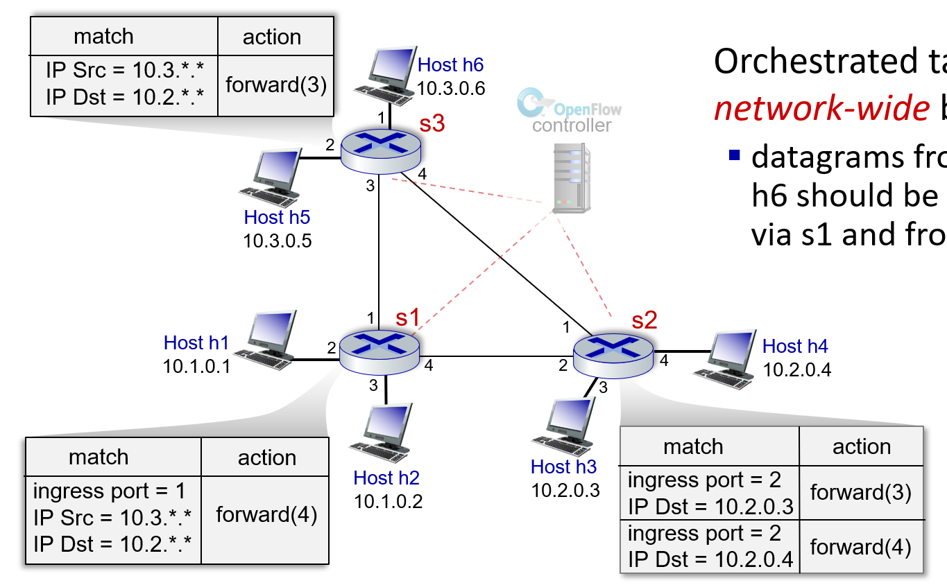 open flow는 이런 generalized forwarding을 위한 일종의 open 표준이라고 볼 수 있다.