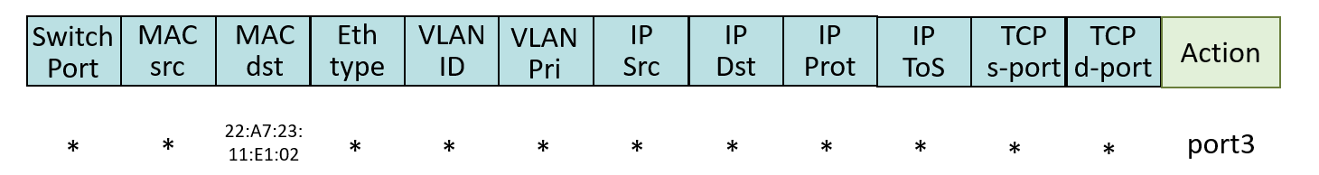 좀 더 구체적으로 예를 들자면, 여러 헤더 필드에 특정한 패턴을 보고 match가 되는지 안되는지 확인하고, 매치된 패킷에 대해 다양한 action을 수행하는 것이다. (우선순위를 부여할 수도 있다. 2개 이상 규칙에 부합하면 어떤 규칙에 우선순위를 줄 것인지 등)
