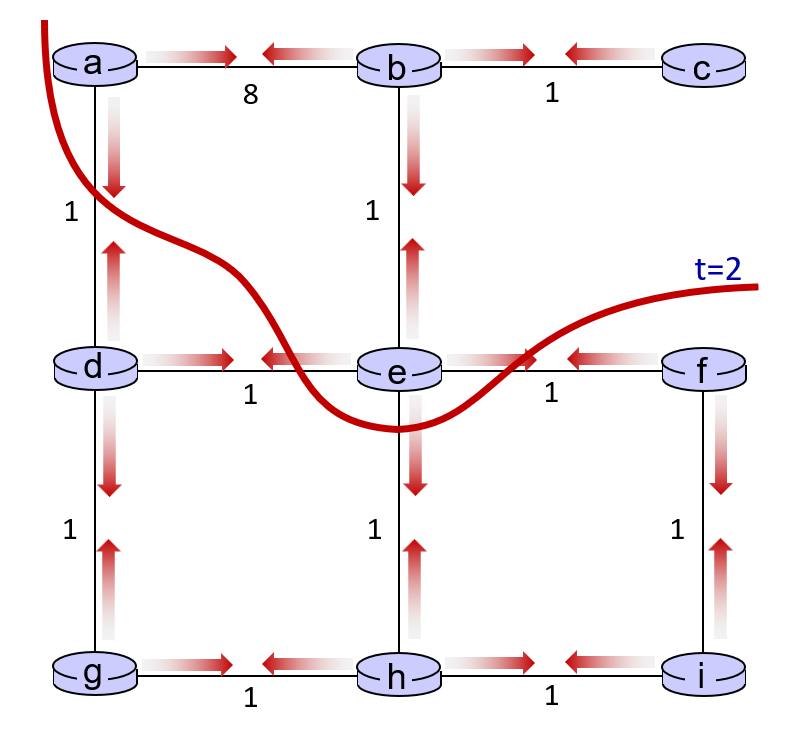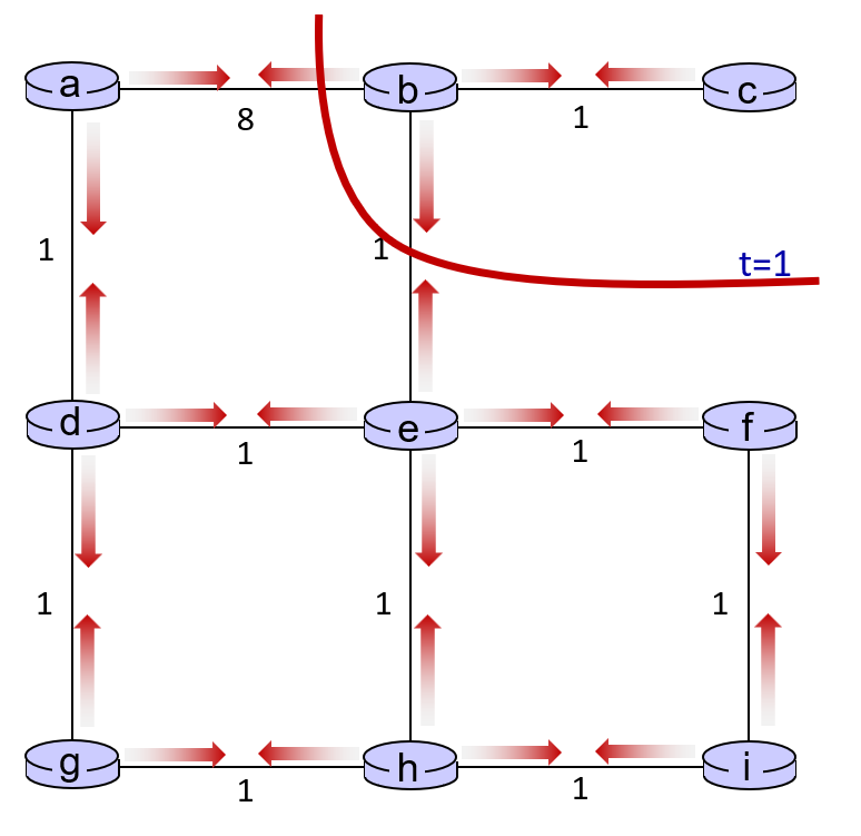 라우터 C의 t = 0 일 때 정보는 t = 0 일 C 내부에만 있을 것이다.