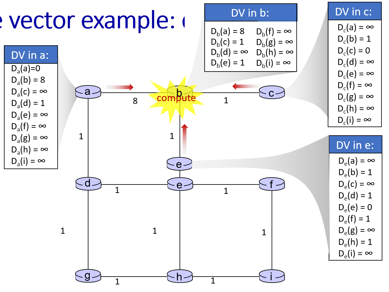 다른 라우터 모두 a와 같이 각각의 DV를 갖고 있다.