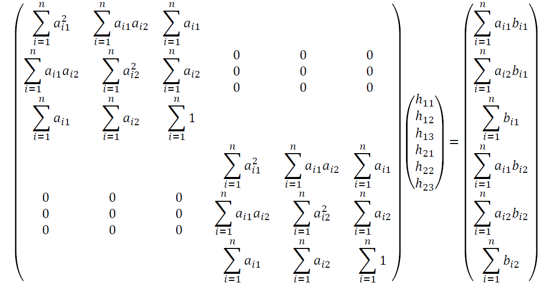 즉, 위 H 에서 6개 원소 값을 결정해야 한다.