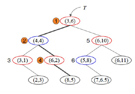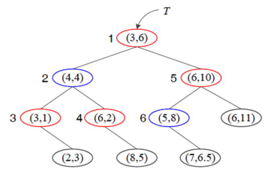 이 축을 기준으로 x를 정렬하면, 가운데 값은 (3, 6) 이 되고, 이를 뺀 나머지들 집합에서 위 과정을 반복한다.