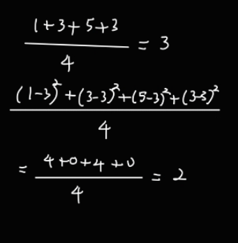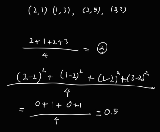 이 4개 점의 분포 평균내면, (2,3) 이 되는데, 이 점을 μ 라고 하자.
