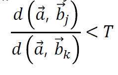 이 방식은 a 에 제일 가까운 특징벡터 b를 구하고, 그 다음으로 가까운 특징벡터 b' 을 구한다.