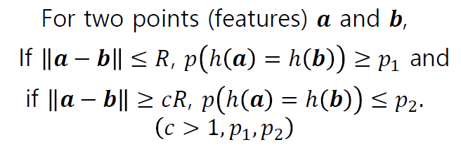 그러면 두 특징벡터가 다른 해시 테이블에서는 같은 컨테이너에 포함될 확률이 올라간다.