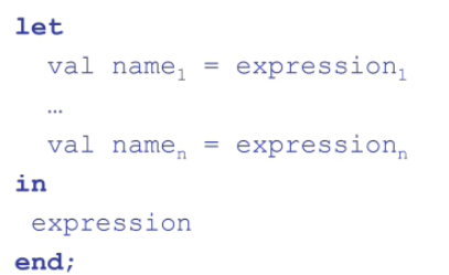 대부분의 함수형 언어는 명령형 언어에서 하는 것과 비슷하게 let 이라는 키워드가 존재한다.