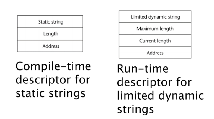 Static Length의 경우, compile-time descriptor가 정해준다. (descriptor = 변수에 어떤 attribute를 모아둔 것)