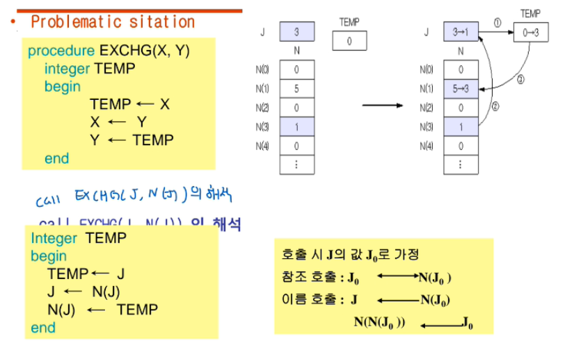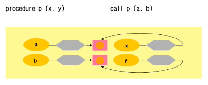 또 프로시저 입장에서는 사실상 formal parameter 를 지역 변수처럼 쓸 수 있게 된다.