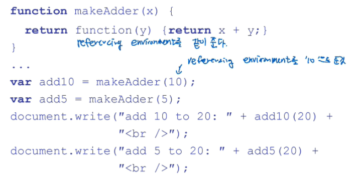 서브프로그램에 참조 환경까지 추가해준 것을 클로저라고 했다.