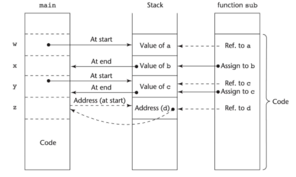 크게 값을 몽땅 복사해서 넘기거나, actual parameter 에 접근할 수 있는 방법을 주는 경우로 분류된다.