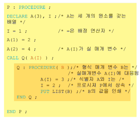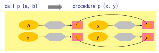 또 프로시저 입장에서는 사실상 formal parameter 를 지역 변수처럼 쓸 수 있게 된다.