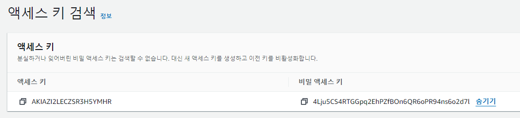아무튼 결론은 엑세스 키를 새로 발급 받는 것이 해결책이었다.