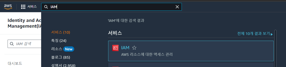 엑세스 키를 추가로 발급 받기 위해 IAM 에 들어간다.