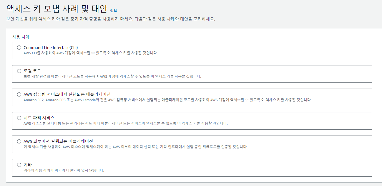 옵션이니 건너뛰고 우측 하단 엑세스 키 만들기 버튼을 클릭한다.