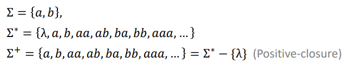 이렇게 * 첨자를 붙인 것을 star closure 라고 부른다.