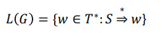 만약 어떤 문법 G = (V, T, S, P) 가 어떤 언어 L 을 생성한다면 (generate) 그 언어는 다음과 같이 표현한다.