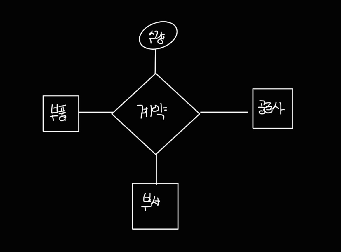 마지막으로 부서와 공급사 사이에는 거래 수량이 되어버리는데, 이 거래 수량이 우리가 의도한 계약 수량이라고 하기에는 이 공급사로부터 몇가지 종류의 부품을 받는지 모르기 때문에 사실상 거래하는 전체 부품의 수량의 의미가 되어버린다.