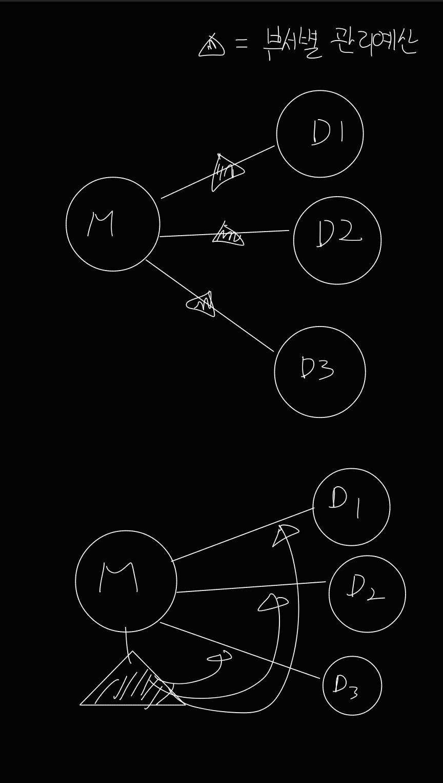 위 다이어그램은 자신이 관리하는 각 부서마다 별도의 관리 예산을 갖고 있는 상태를 나타낸다.