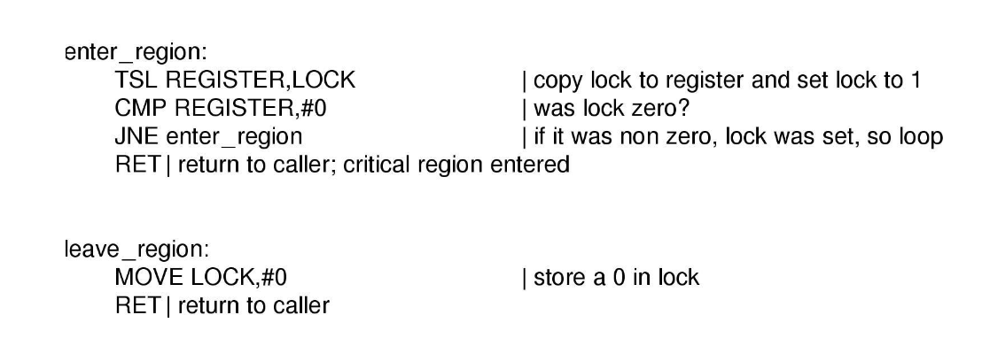 busy waiting 방법으로 상호 배제를 제공하는 또 다른 방법으로 TSL instruction을 사용하는 방법이 있다.