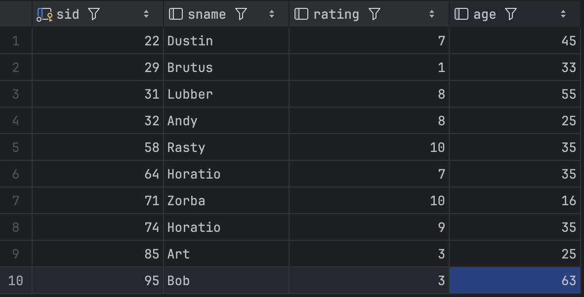 sailors 테이블