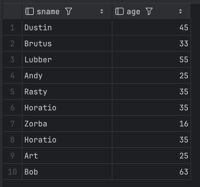 1. 모든 선원의 이름과 나이 구하기