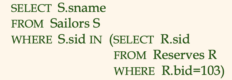 WHERE R.sid = S.sid);