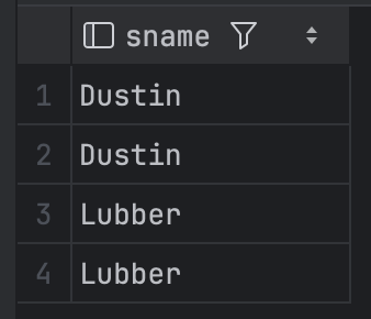 이때 IN 연산자는 집합 연산자로서 해당 서브쿼리의 결과 집합에 S.sid 가 존재하는 sid 만을 조회한다.