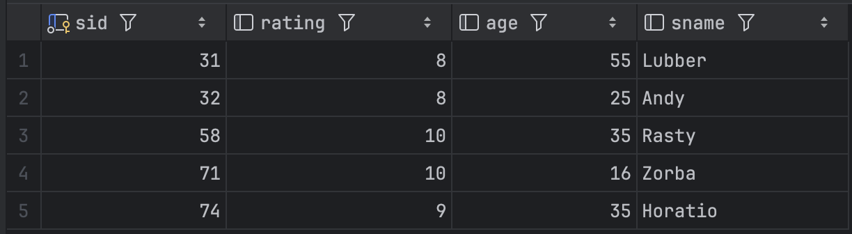 WHERE S.rating > ALL (SELECT S2.rating