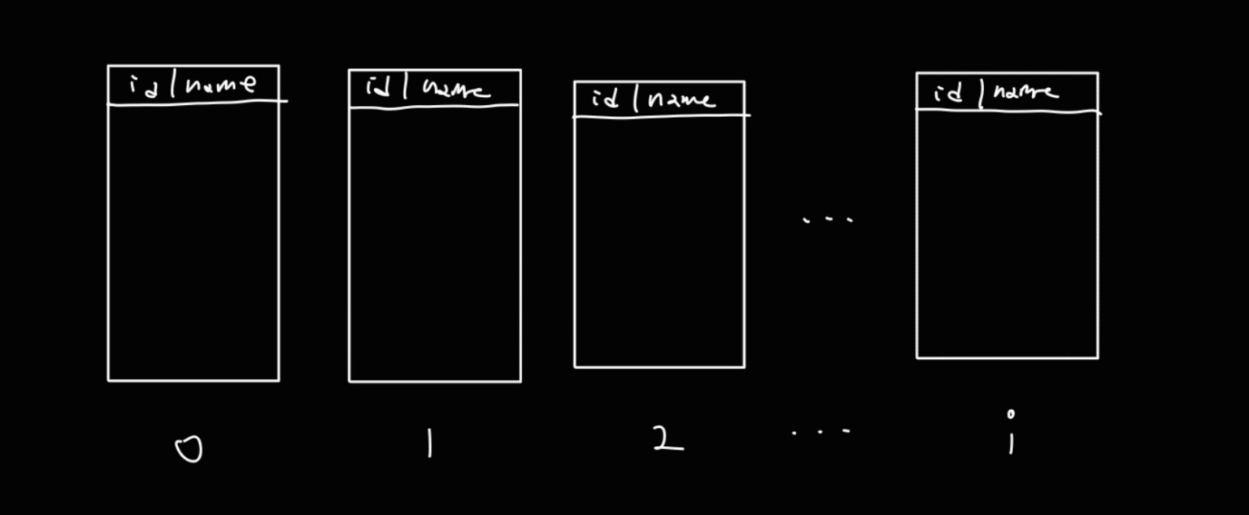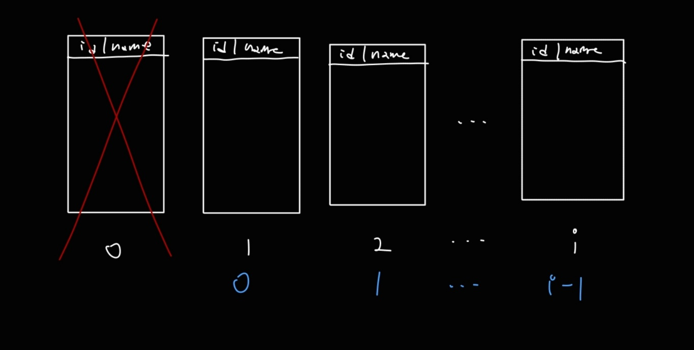 이때 어떤 데이터가 어떤 테이블에 저장될 지 결정하기 위해 각각의 테이블에 0번부터 i 번까지 인덱스를 매긴다.
