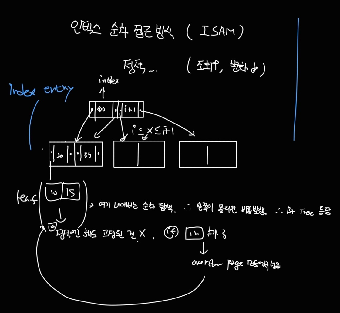 먼저 ISAM 은 인덱스가 위와 같이 이진 트리 구조로 되어있다.