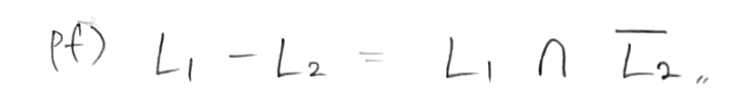 한번 예시 문제로, 차집합 연산에 대해서도 regular language가 닫혀있는지 확인해보자.