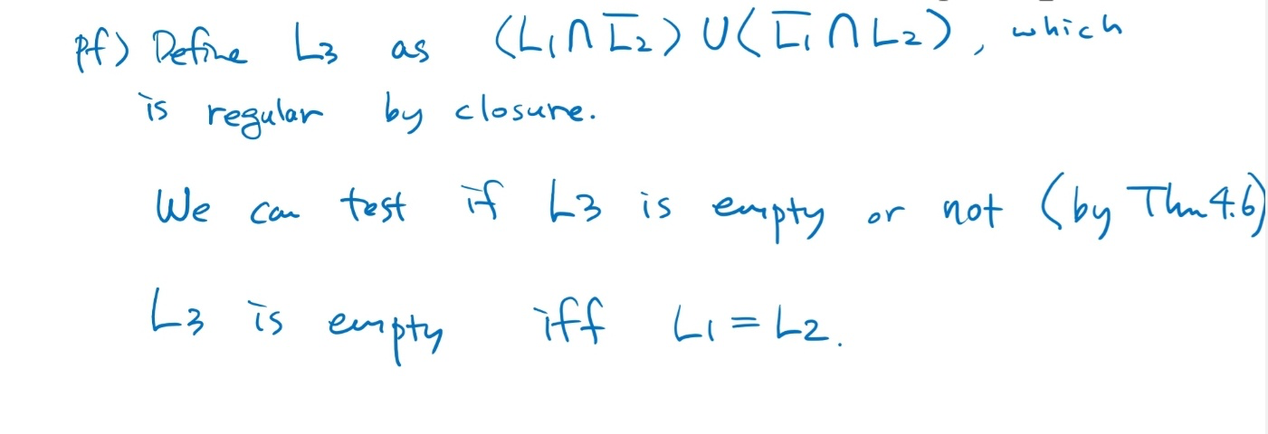 두 regular language L1, L2 가 주어졌을 때, 두 언어가 같은지 판별할 수 잇는 알고리즘이 존재한다.
