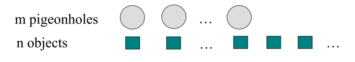 비둘기집이 m 개 있고, m < n 인 n 마리의 비둘기가 있을 때, 모든 비둘기가 비둘기 집에 들어가야 한다면 최소한 1개의 비둘기 집에는 2마리 이상의 비둘기가 존재할 수 밖에 없다는 원리이다.