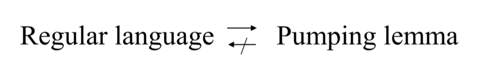 어떤 언어에 대해 pumping lemma 를 적용하여 3분할 후, up, down 해도 여전히 같은 language 라고 해서 그 언어가 regular 하다고는 말할 수 없다.