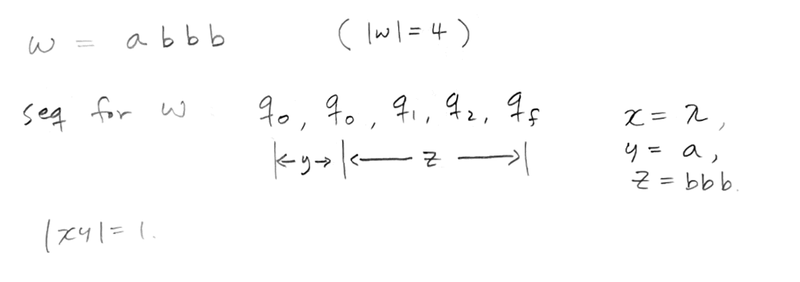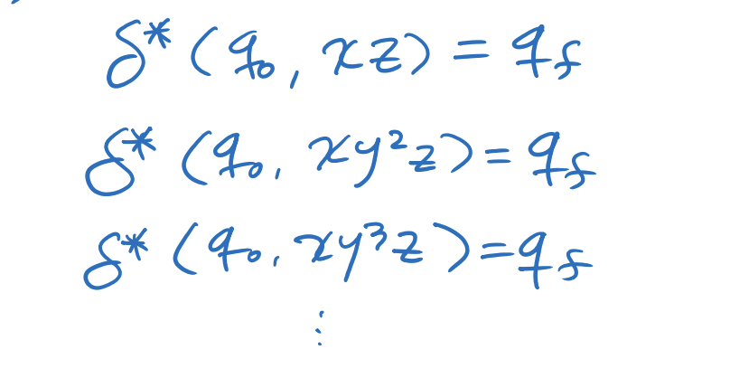 이 중에서 cycle이 발생하는 경우는 q2-qf-q2 이며 이 부분을 y로 묶은 뒤 앞 뒤를 x, z 로 만든다.