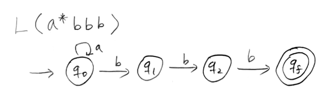 예를 들어 이 언어를 NFA로 표현하면 위와 같다.