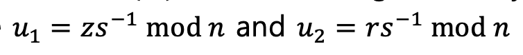 n은 public한 값이고, r, s 는 서명으로부터 알 수 있다.