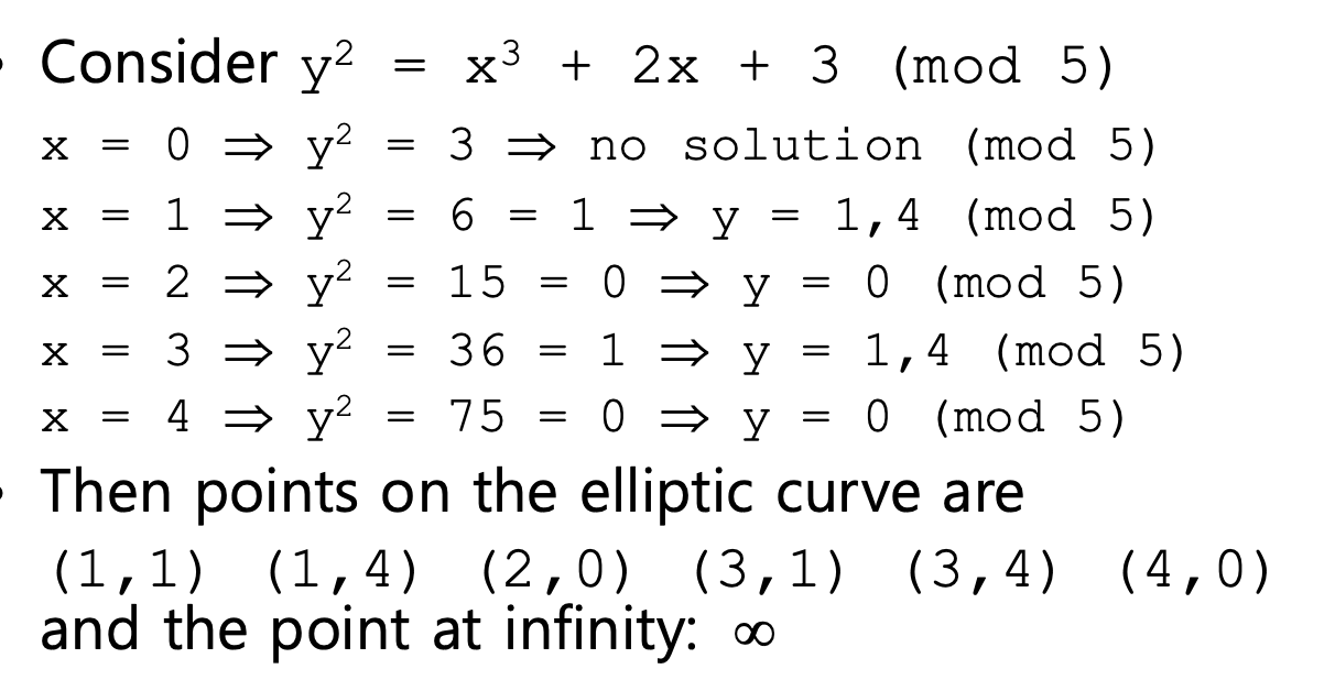 이때 p 는 소수이고, 나머지 값은 0부터 p-1 사이의 정수값이 나오는데, 이 point, 정수값을 사용한다.