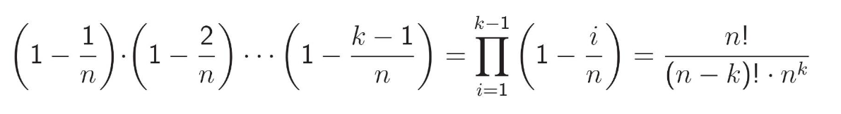 전체 확률에서 모든 사람들이 나와 생일 다를 확률을 구하면 된다.
