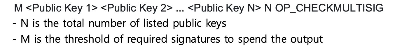 M = 2 <5개의 pub 키> 5 OP_CHECKMULTISIG 와 같이 작성하는 것이다.