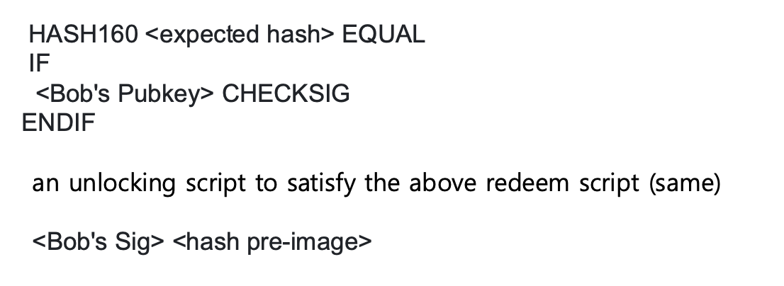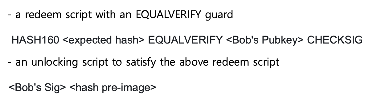 예를 들어 밥이 자신의 서명과 has pre-image 를 제시했다고 했을 때, 이 인풋에 이어서 위와 같은 output 을 제시했다고 해보자.