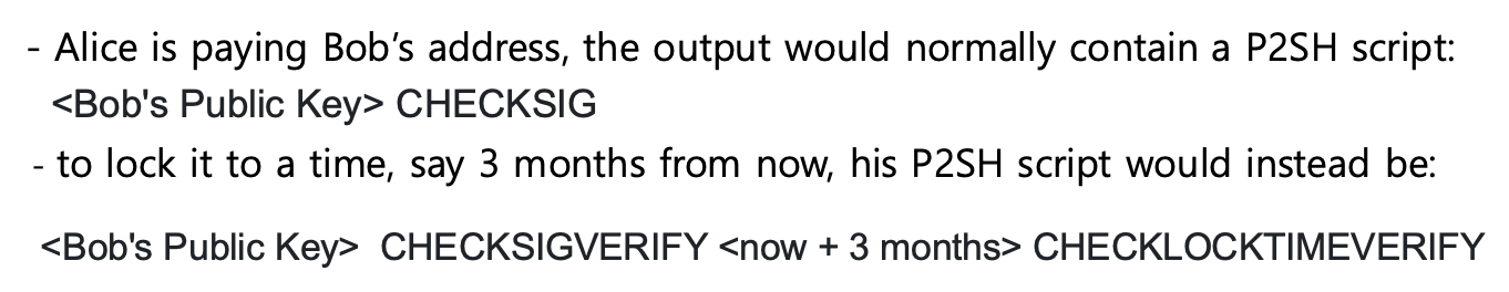타임 락은 트랜잭션 자체에서 명시할 수도 있지만, output script 에서도 명시할 수 있다.