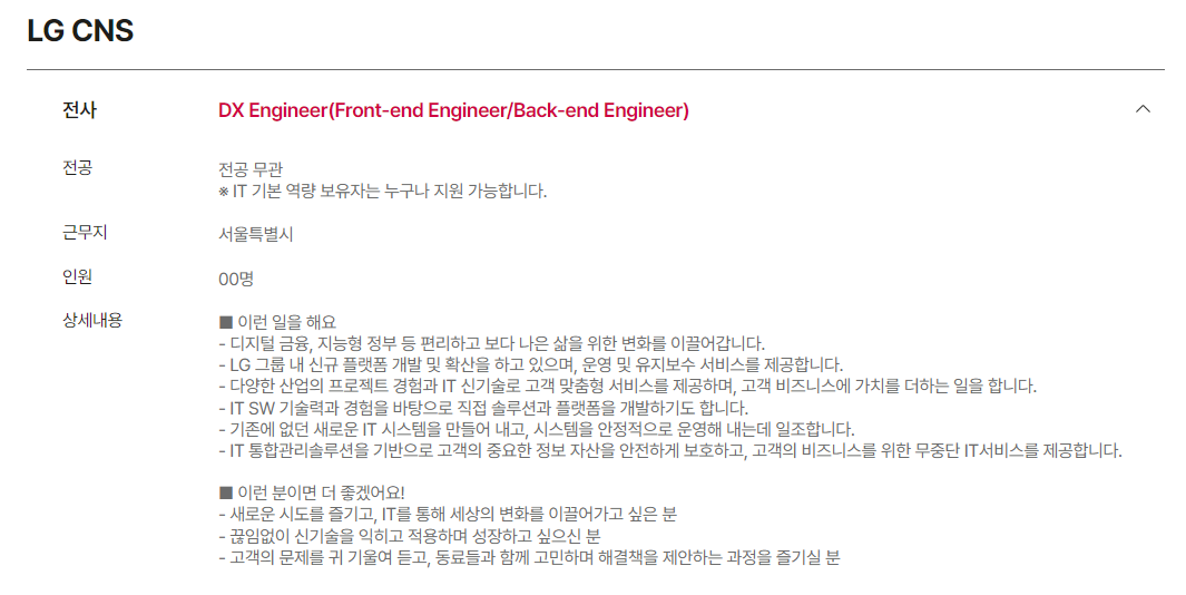 2번은 LG CNS 사이트 찾아보니 Mu Career Up (MCU) 라고 부서 자유롭게 이동하는 시스템이 있다고 해서, 이를 기반으로 다양한 경험을 쌓고 싶음을 어필했다.