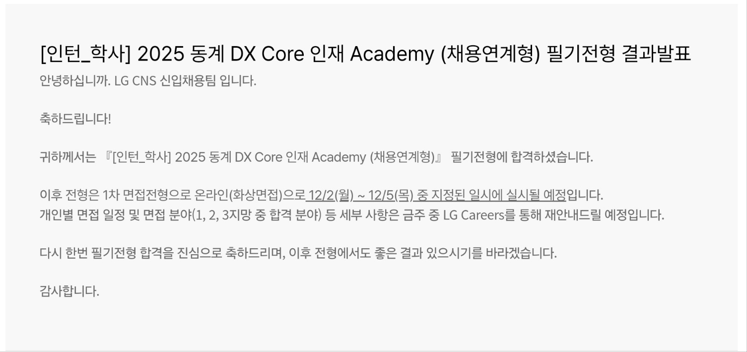 서류 결과는 합/불을 직접 메일로 보내주는게 아니라, 메일로는 결과가 나왔다고만 말하고, 실제 결과는 LG 채용 사이트에서 확인한다.