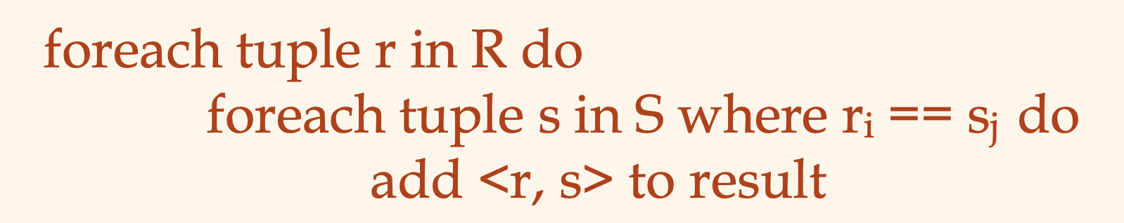 두 테이블의 조인 연산은 단순히 중첩 루프를 통해 구현하고,