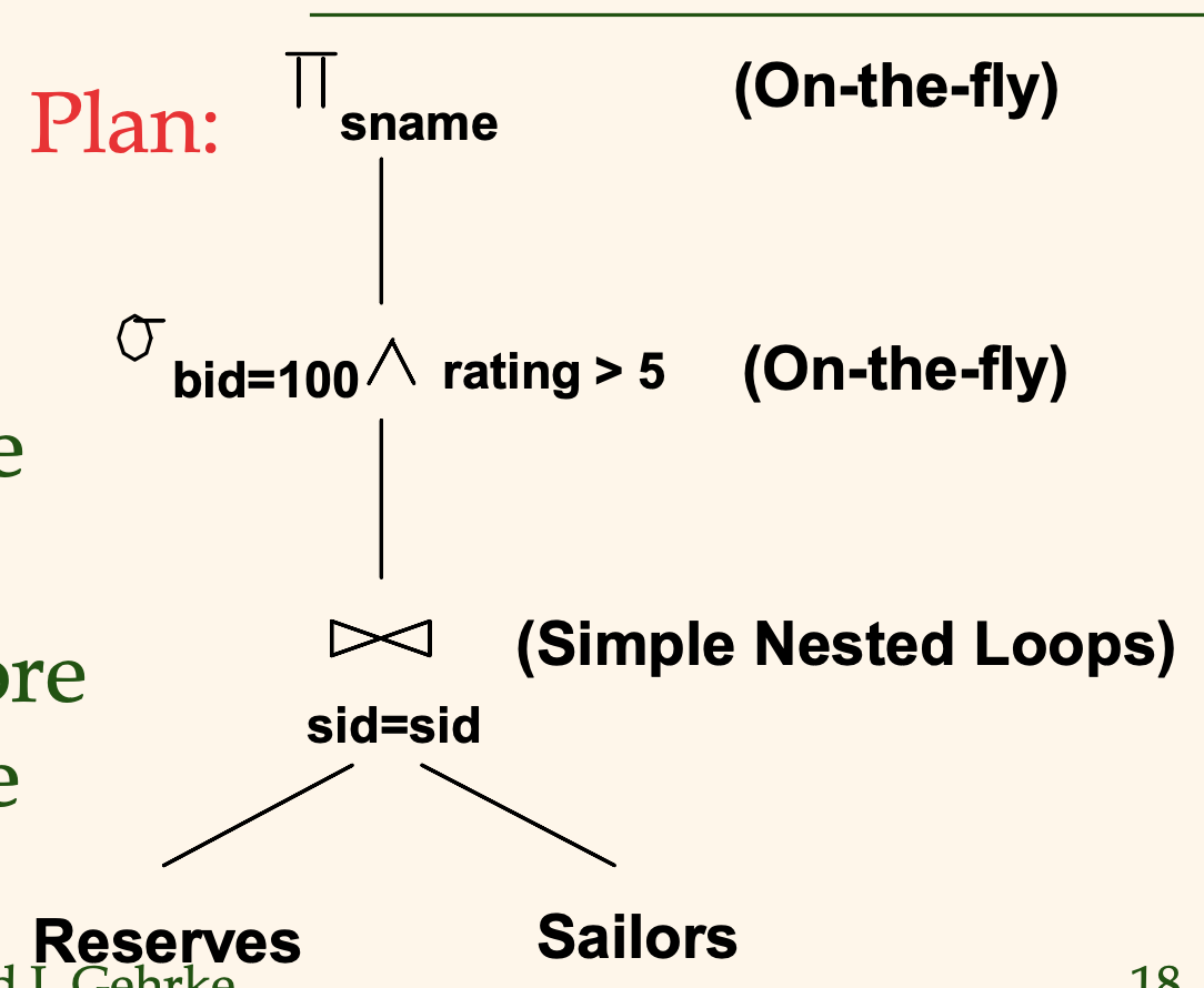 만약 Sailors 테이블의 sid 에 인덱스가 존재한다면, 이 조인 연산을 수행할 때는 인덱스가 존재하는 Sailors 테이블에 대한 스캔을 안쪽 루프에 넣어서 돌리면 더 효율적이다.