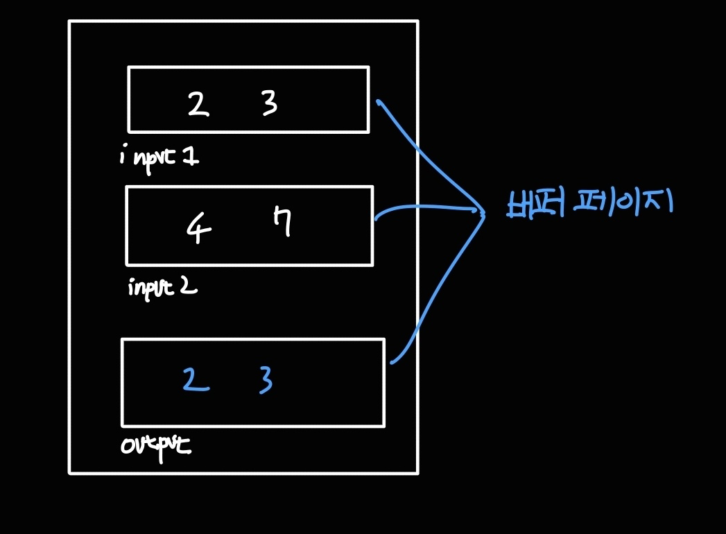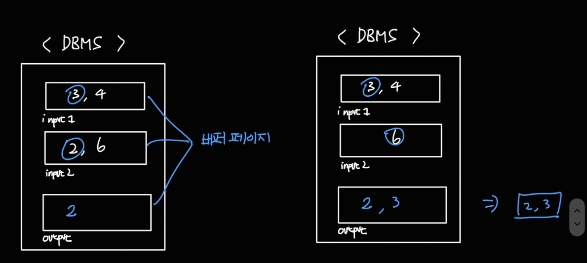 이때 페이지는 버퍼 페이지의 input, output 버퍼 페이지를 통해 들어오고 나간다.