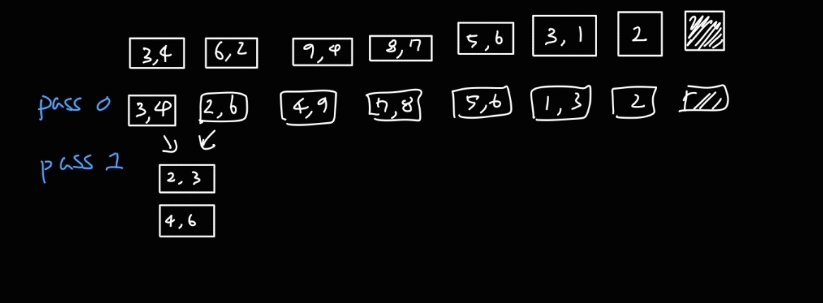 이제 이전 패스의 결과로 생성된 런 2개를 input page 로 받아들인다.